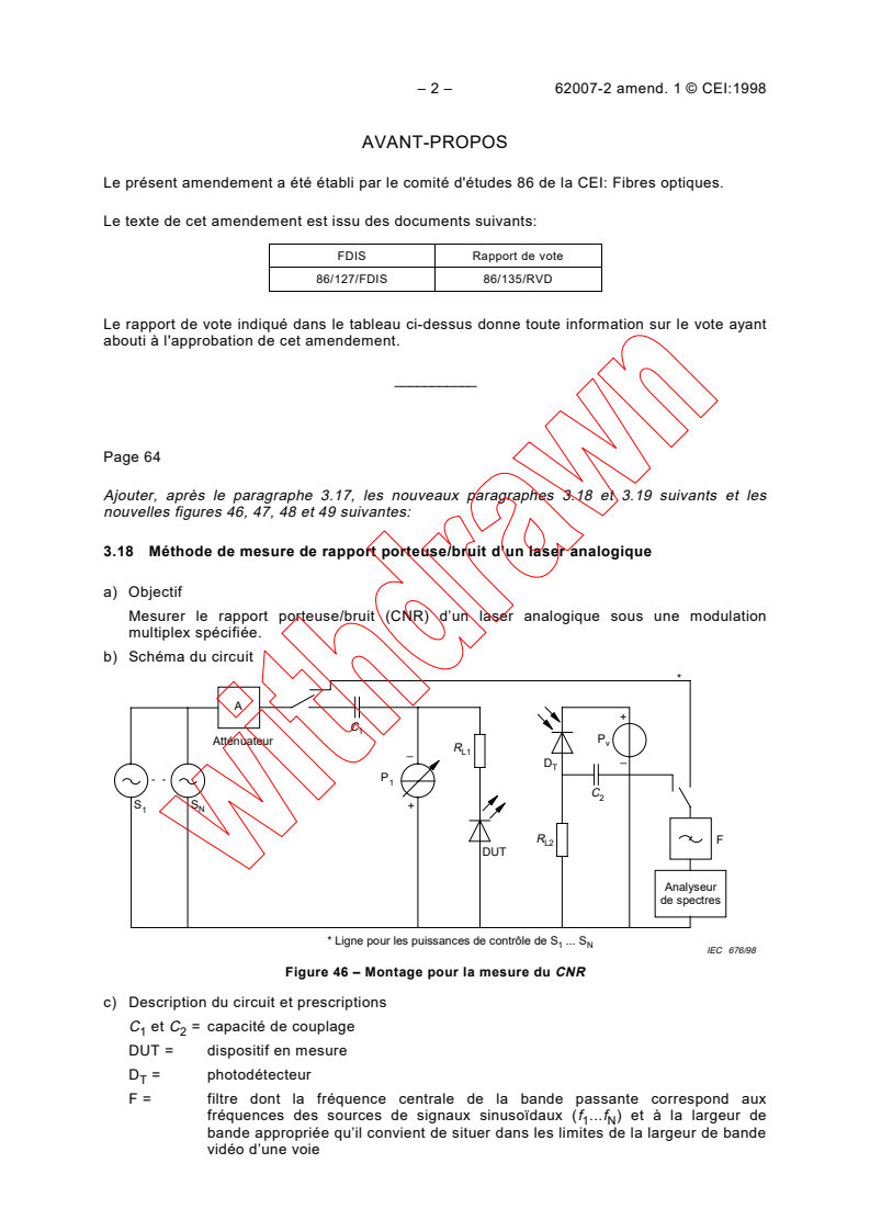 Keywords: IEC 62007-2, semiconductor optoelectronic devices, fibre optic systems, measuring methods, carrier to noise ratio, optical modulation index, intermodulation distortion, analogue laser testing, optical photodiode measurement, fibre optic communication standards.