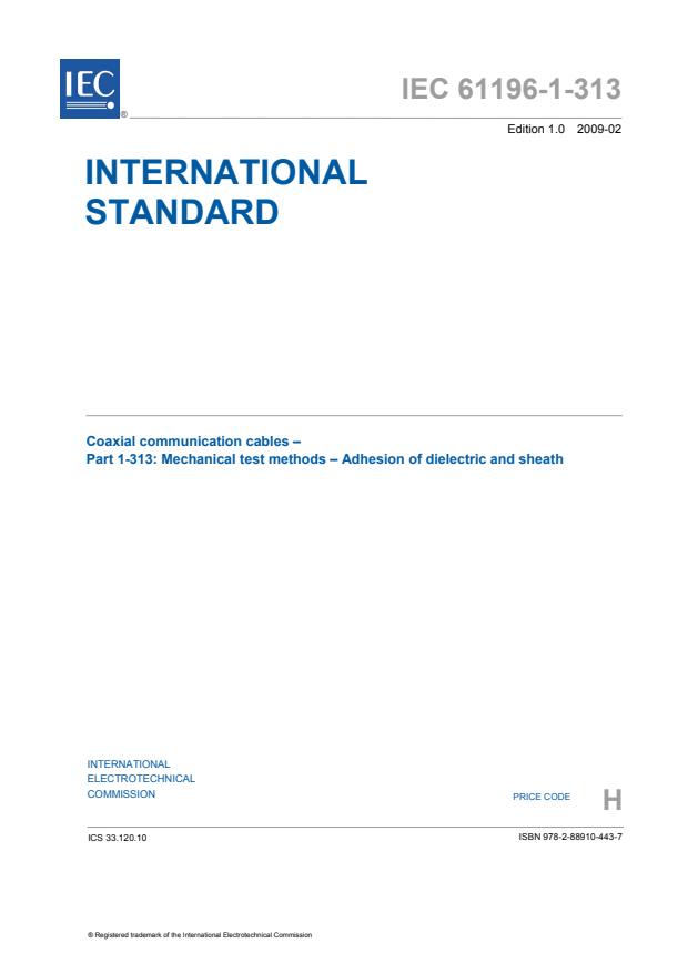 IEC 61196-1-313:2009(E) applies to coaxial communication cables. It specifies the test method to determine the adhesion of the dielectric to inner conductor and of the sheath to outer conductor of coaxial cables.