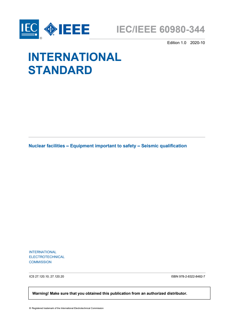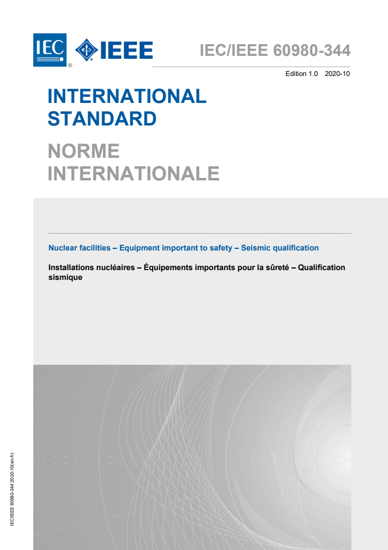 IEC/IEEE 60980-344:2020 - Nuclear facilities - Equipment important to safety - Seismic qualification Released:10/20/2020