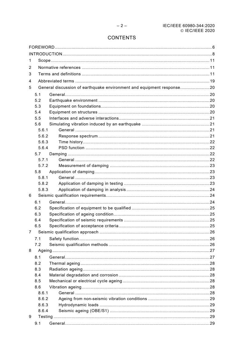 IEC/IEEE 60980-344:2020 - "Nuclear facilities - Equipment important to safety - Seismic qualification" describes accepted methods for demonstrating that equipment in nuclear facilities can meet required safety performance when subjected to seismic events. The standard applies to electrical, mechanical, instrumentation and control equipment/components and provides methods for seismic qualification using testing, analysis, or combined approaches. It focuses on producing quantitative data to verify equipment performance during and/or after seismic demands (including consideration of prior ageing and lower-intensity earthquakes). NOTE: the document does not prescribe seismic demand spectra or specific performance limits - users must pair it with project-specific seismic requirements.