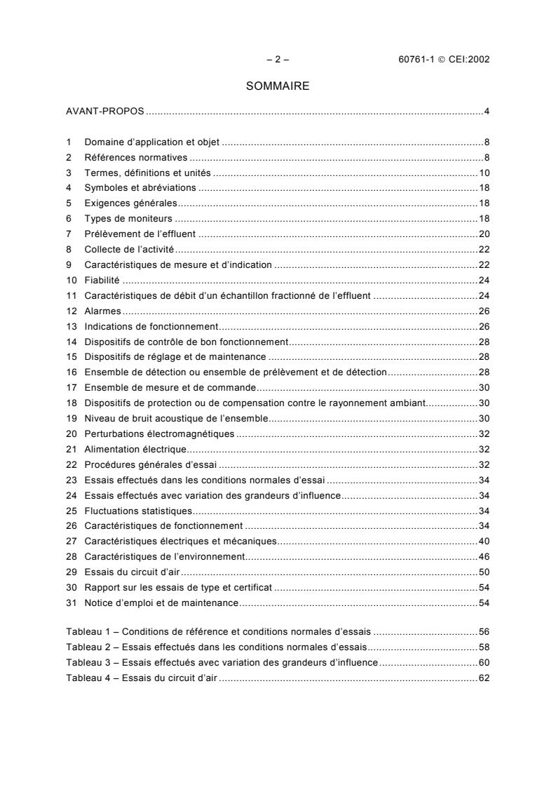 IEC 60761-1:2002 is a standard published by the International Electrotechnical Commission (IEC). Its full title is "Equipment for continuous monitoring of radioactivity in gaseous effluents - Part 1: General requirements". This standard covers: Lays down mandatory general requirements and gives examples of acceptable methods for equipment for continuous monitoring of radioactivity in gaseous effluents. Specifies general characteristics, general test procedures, radiation, electrical, safety and environmental characteristics and the identification and certification of the equipment.