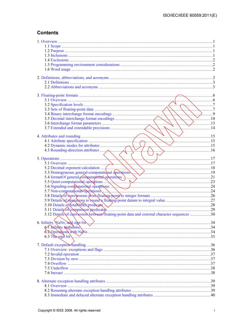 ISO/IEC/IEEE 60559:2011(E) specifies formats and methods for floating-point arithmetic in computer systems - standard and extended functions with single, double, extended, and extendable precision - and recommends formats for data interchange. Exception conditions are defined and standard handling of these conditions is specified. It provides a method for computation with floating-point numbers that will yield the same result whether the processing is done in hardware, software, or a combination of the two. The results of the computation will be identical, independent of implementation, given the same input data. Errors, and error conditions, in the mathematical processing will be reported in a consistent manner regardless of implementation. This first edition, published as ISO/IEC/IEEE 60559, replaces the second edition of IEC 60559.