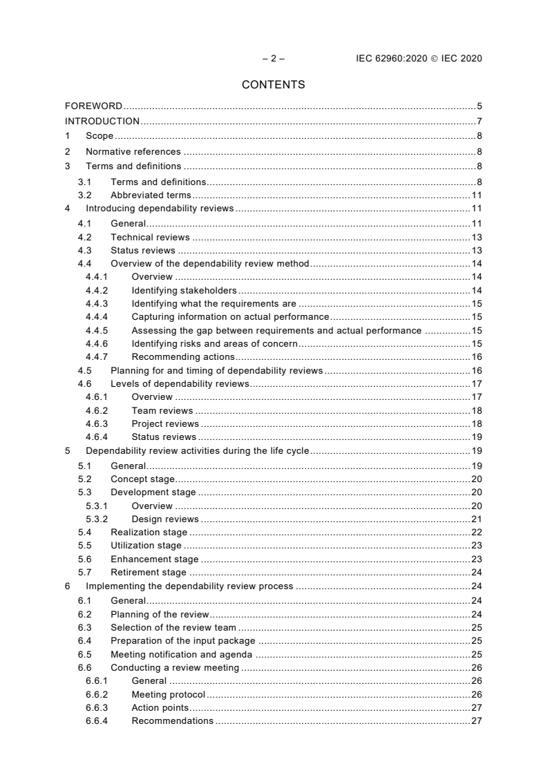 IEC 62960:2020 provides guidance on a review methodology for dependability from a technical perspective that is applicable at all stages of a system life cycle. Its application can improve the dependability of a system throughout its life cycle by triggering appropriate actions at appropriate times to address potential dependability problems.