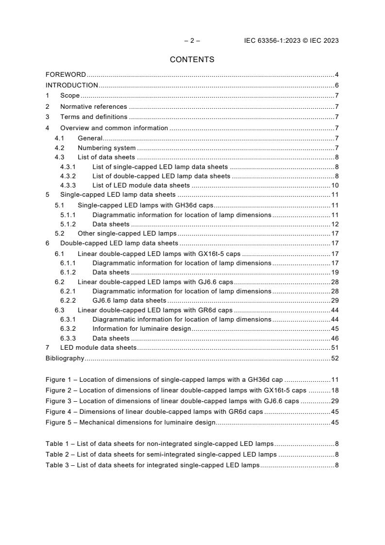 IEC 63356-1:2023 specifies data sheets of LED lamps and LED modules with a series of parameters per data sheet for a specific LED light source that enables interchangeability between products from different LED light source manufacturers. This second edition cancels and replaces the first edition published in 2022. This edition constitutes a technical revision. This edition includes the following significant technical changes with respect to the previous edition: a) addition of datasheets for GH36d capped LED lamps; b) addition of datasheets for GJ6.6t and GJ6.6d-1 capped LED lamps; c) addition of datasheets for GR6d capped LED lamps.