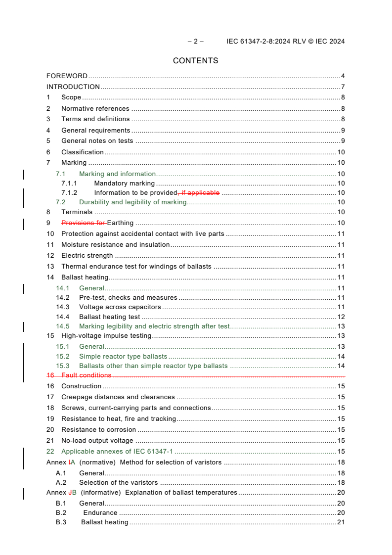 - Normative and informative annexes - e.g., Annex IA (method for selection of varistors), Annex JB (explanation of ballast temperatures), and an annexed schedule of more onerous requirements