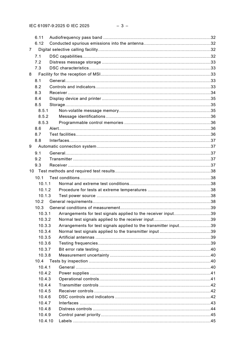- Digital Selective Calling (DSC): DSC capabilities, message storage, bit error testing and required DSC characteristics (newly integrated from IEC 61097-3).