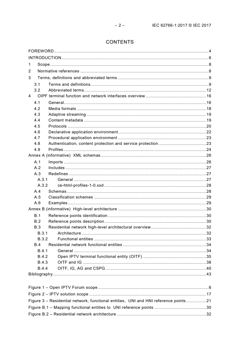IEC 62766-1:2017 - Consumer terminal function for access to IPTV and open Internet multimedia services - Part 1: General - defines the common elements and the overall structure of the IEC 62766 series. It provides the roadmap and scope for the family of standards that standardize the user‑to‑network interface (UNI) for consumer terminals to access IPTV and open Internet multimedia services over both managed (QoS‑assured) and unmanaged networks.