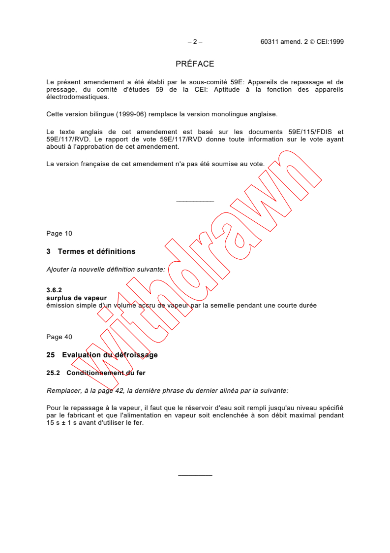 Le présent amendement a été établi par le sous-comité 59E: Appareils de repassage et de