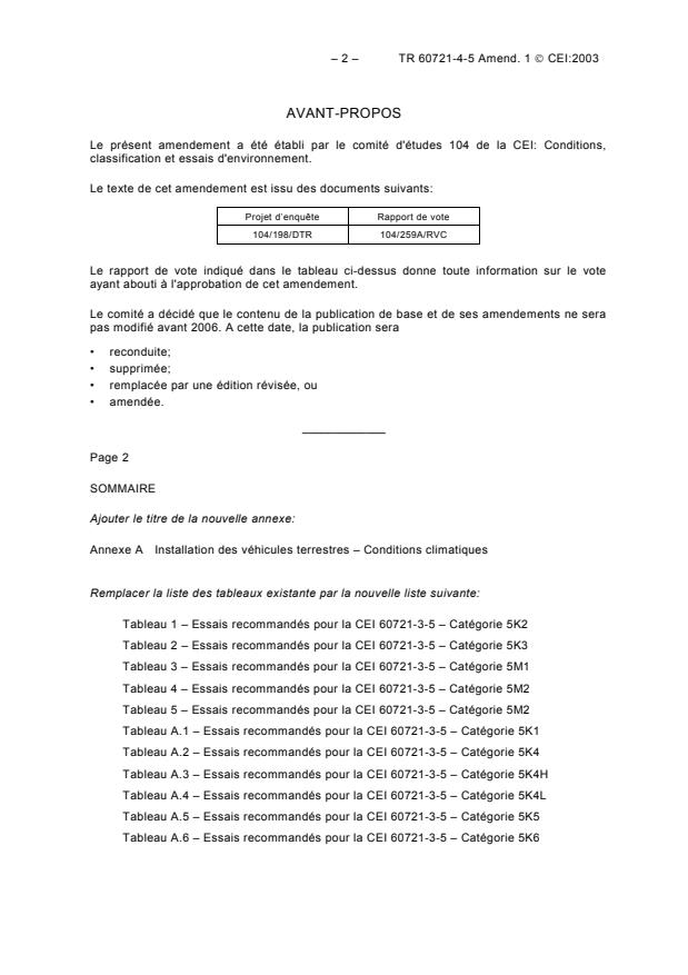 – 2 – TR 60721-4-5 Amend. 1 CEI:2003