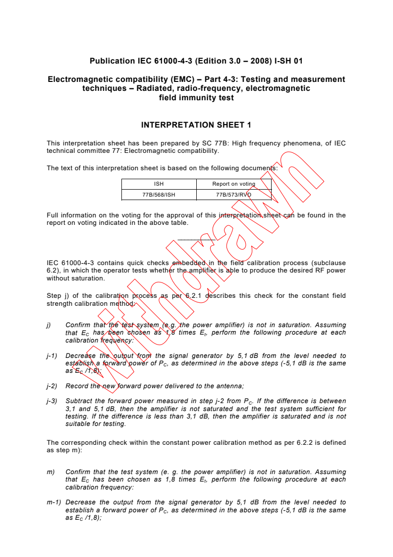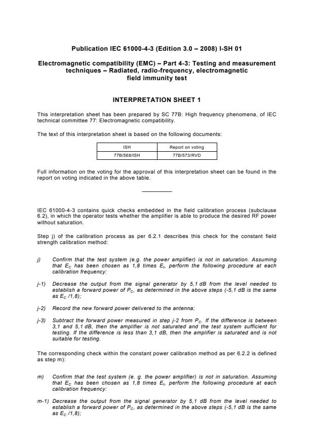 Keywords: IEC 61000-4-3, electromagnetic compatibility, EMC testing, radiated RF immunity, electromagnetic field immunity test, electrical equipment immunity, RF interference testing, IEC standards, EMC compliance, amplifier saturation check, test calibration, anechoic chamber, immunity test procedures, digital radio telephones, RF emission protection.