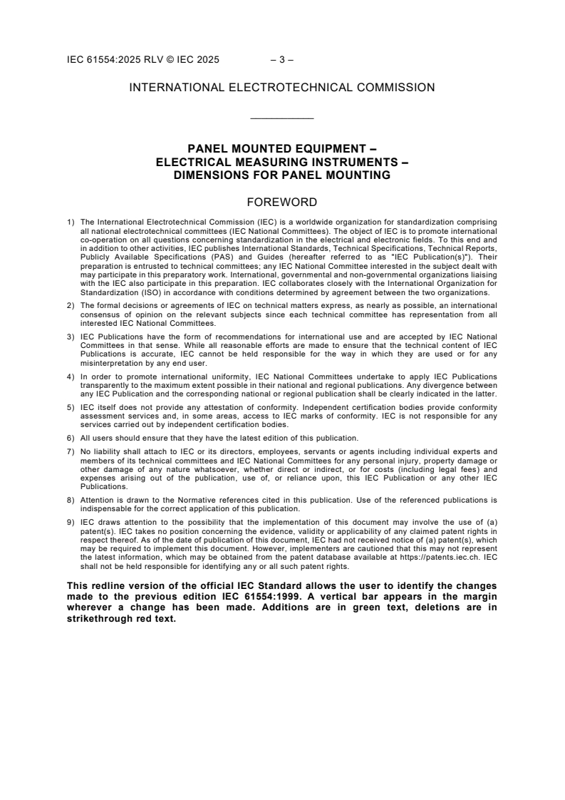 REDLINE IEC 61554:2025 RLV - Panel mounted equipment - Electrical measuring instruments - Dimensions for panel mounting/23/2025