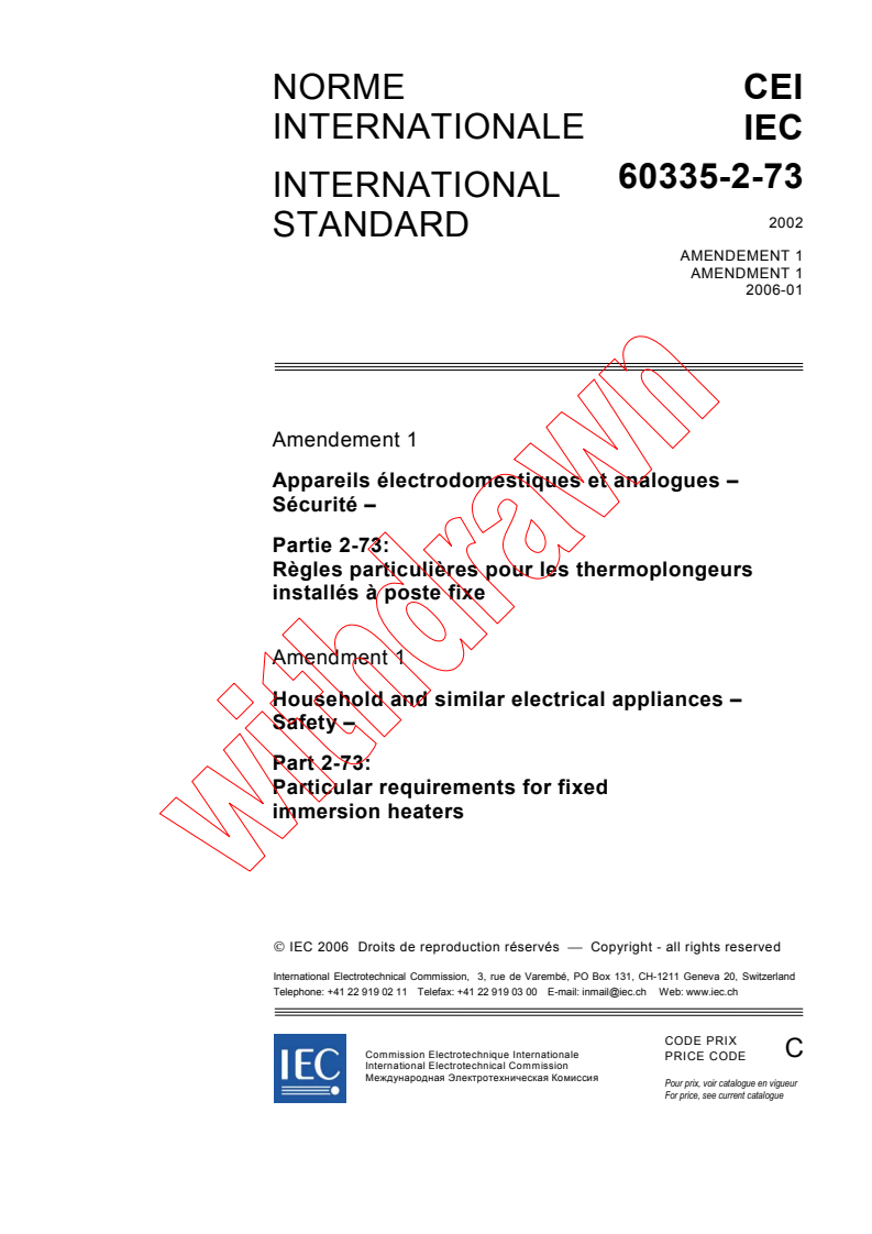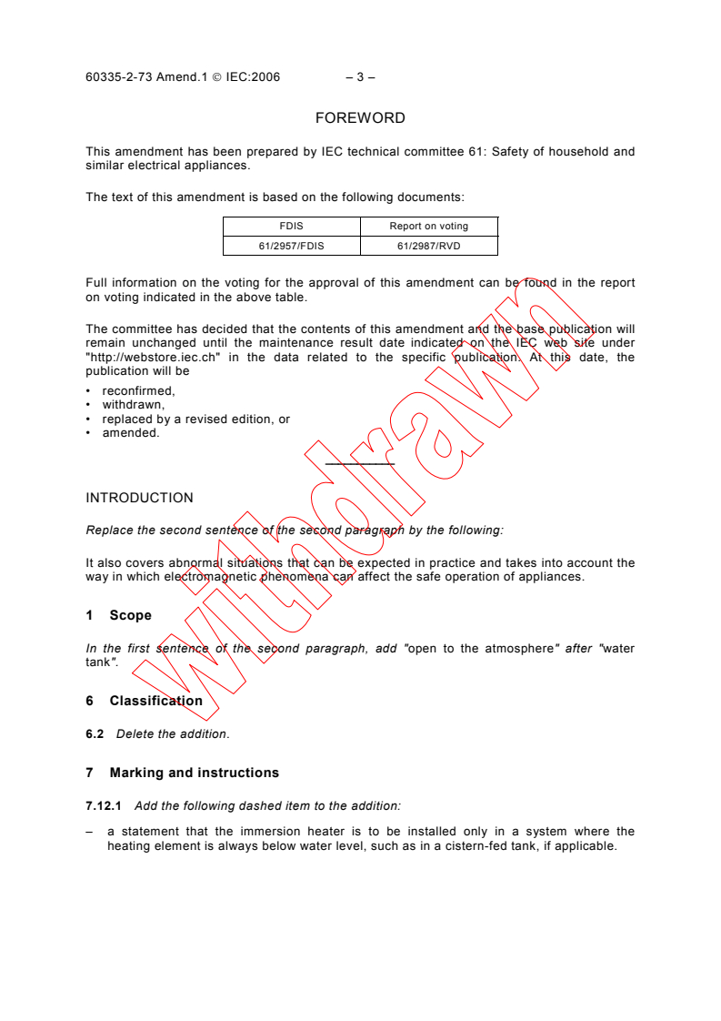 IEC 60335-2-73:2002/AMD1:2006 - Amendment 1 - Household and similar electrical appliances - Safety - Part 2-73: Particular requirements for fixed immersion heaters