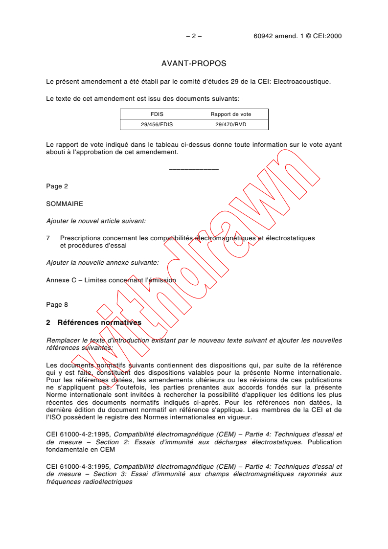 Le présent amendement a été établi par le comité d’études 29 de la CEI: Electroacoustique.