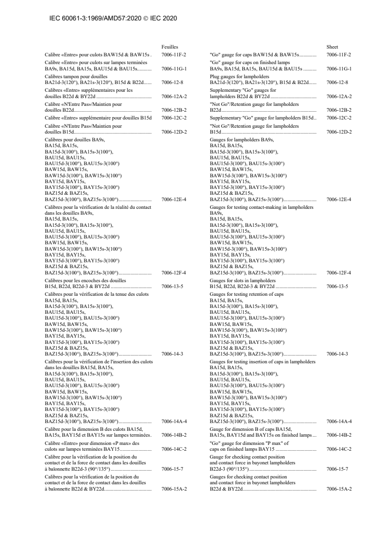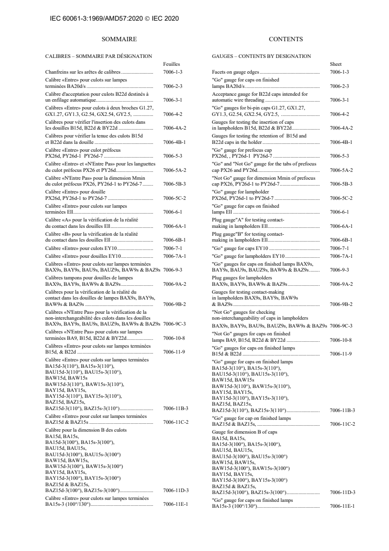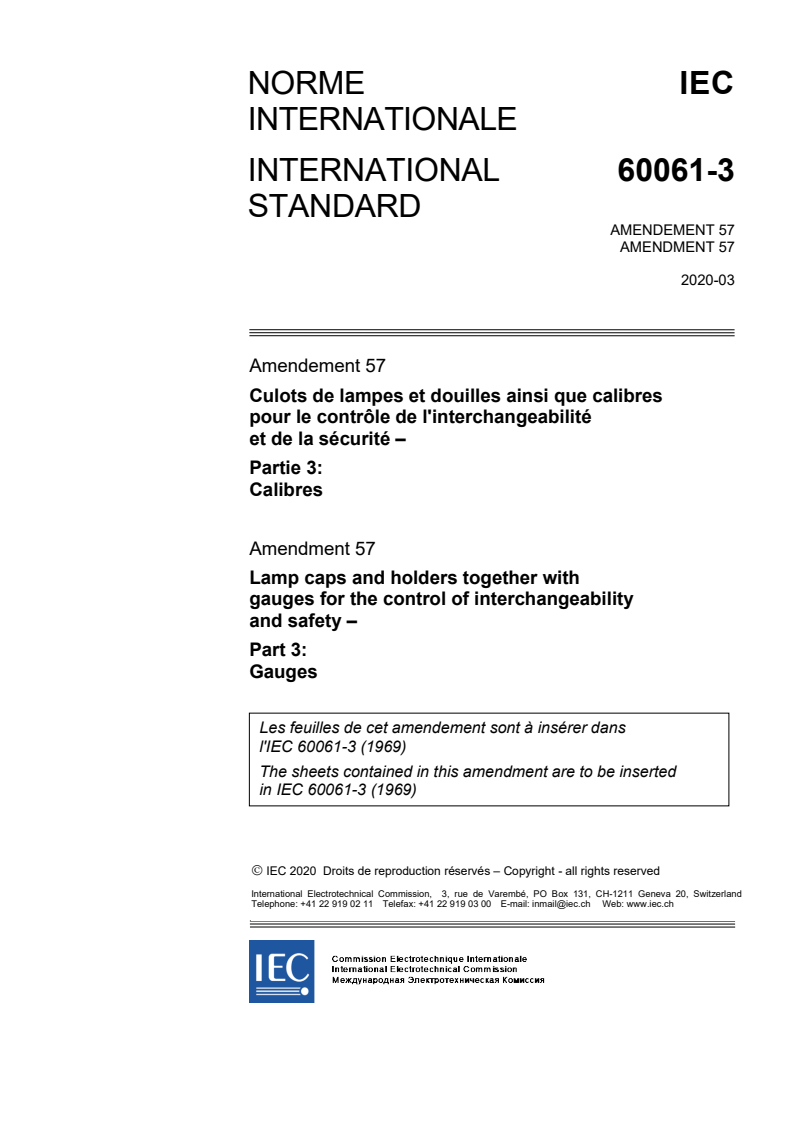 Amendment 57 - Lamp caps and holders together with gauges for the control of interchangeability and safety - Part 3: Gauges