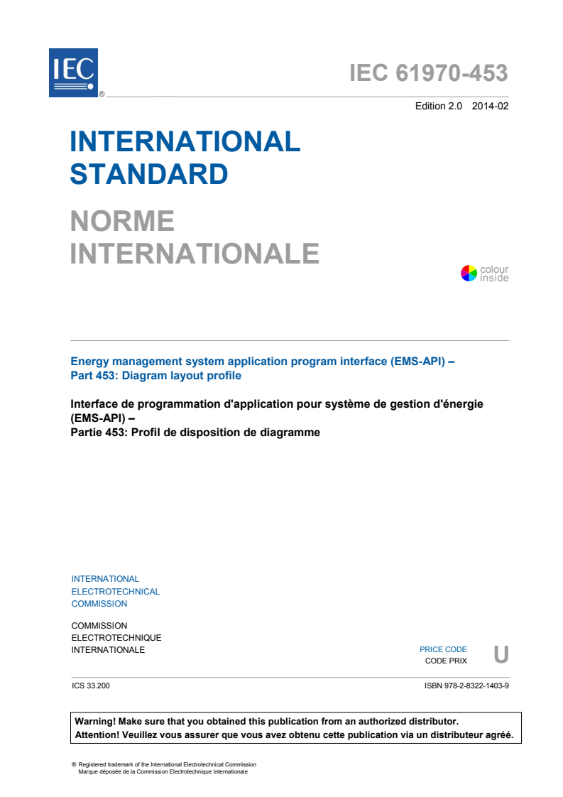 IEC 61970-453:2014 - Energy management system application program interface (EMS-API) - Part 453: Diagram layout profile Released:2/25/2014