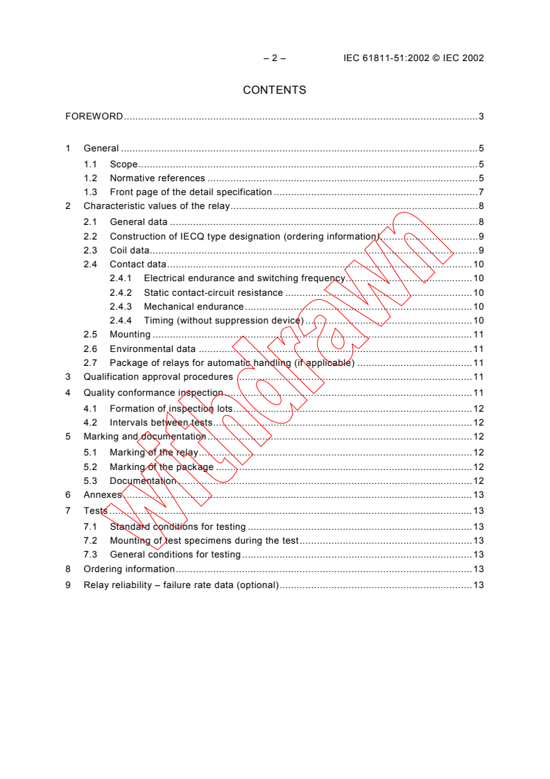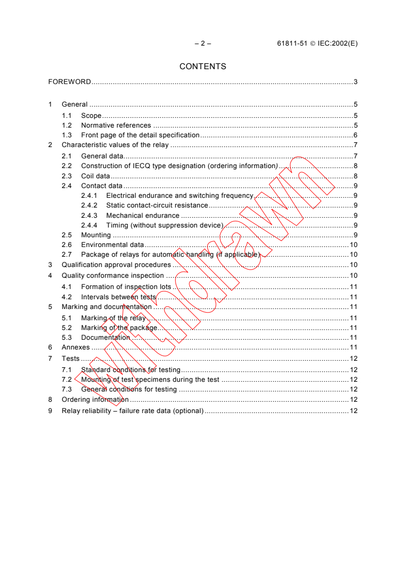 IEC 61811-51:2002 Is a blank detail specification applicable to electromechanical all-or-nothing telecom relays of assessed quality. Selects the appropriate methods of test to be used in detail specifications and contains basic test schedules to be used in the preparation of such specifications.