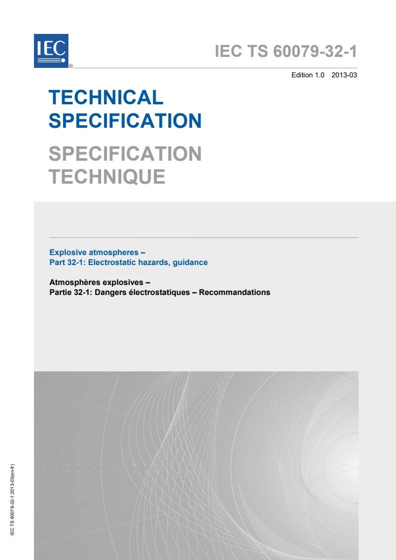 IEC TS 60079-32-1:2013 - Explosive atmospheres - Part 32-1: Electrostatic hazards, guidance Released:8/20/2013