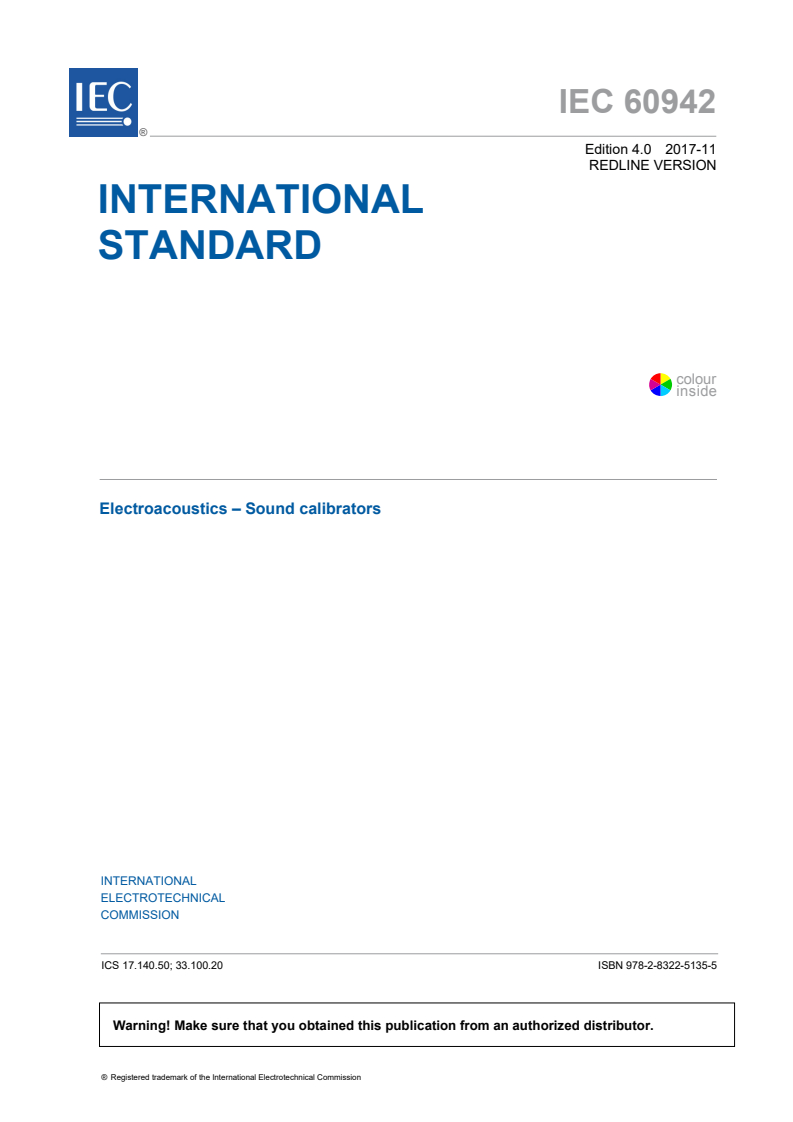 IEC 60942:2017 RLV - Electroacoustics - Sound calibrators Released:11/29/2017