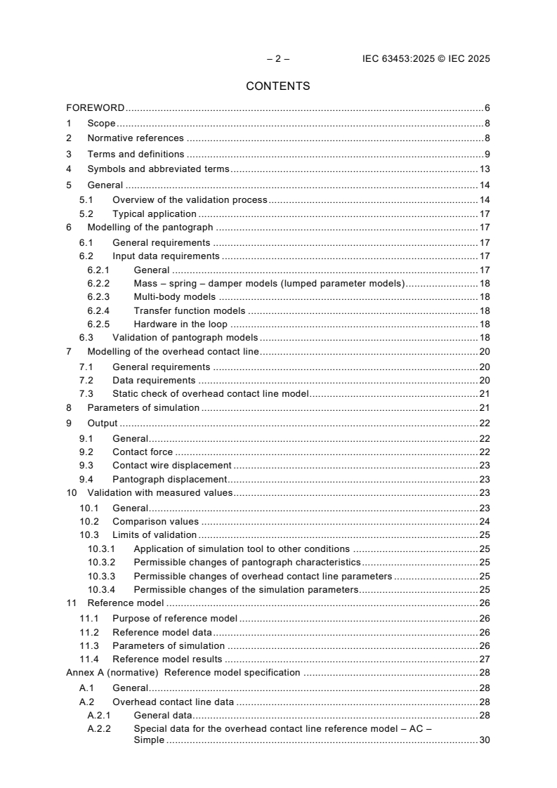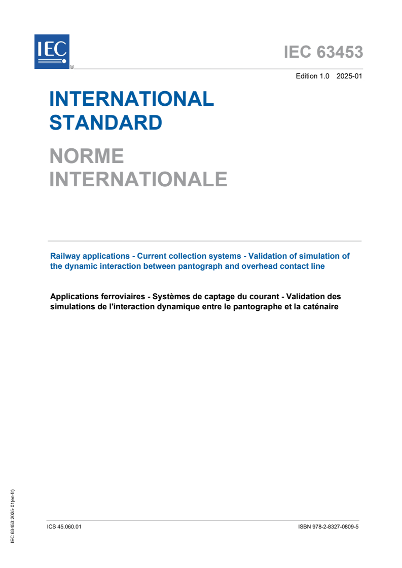 Keywords: IEC 63453:2025, pantograph, overhead contact line, OCL, current collection simulation, validation, railway applications, dynamic interaction, simulation tools, model validation.