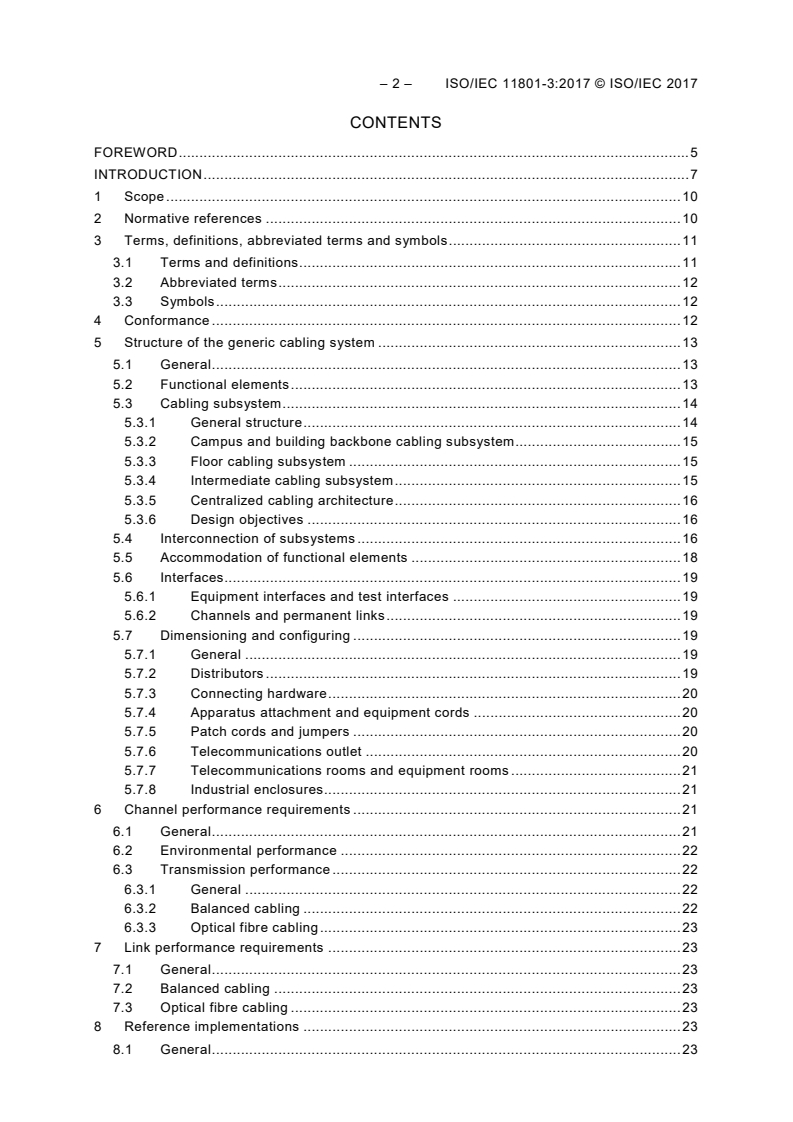 ISO/IEC 11801-3:2017(E) This document specifies generic cabling, which is critical for providing robust services to the automation islands in industrial premises, or industrial spaces within other types of building. Additionally those premises can include office spaces (for which generic cabling is specified in ISO/IEC 11801-2) or data centre spaces (for which generic cabling is specified in ISO/IEC 11801-5). The contents of the corrigendum of April 2018 have been included in this copy.
