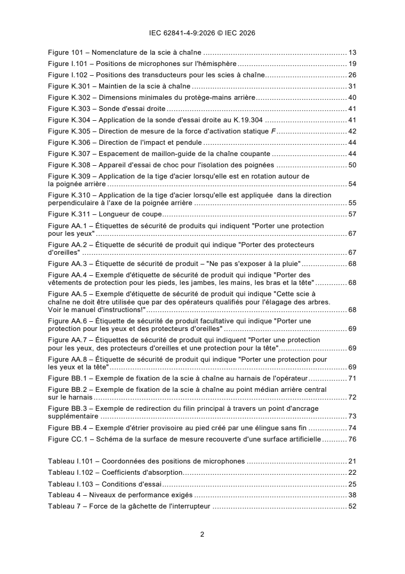 IEC 62841-4-9:2026 - Outils électroportatifs à moteur, outils portables et machines pour jardins et pelouses - Sécurité - Partie 4-9: Exigences particulières pour les scies à chaîne alimentées par batterie pour l’élagage des arbres Released:27. 01. 2026 Isbn:9782832708248