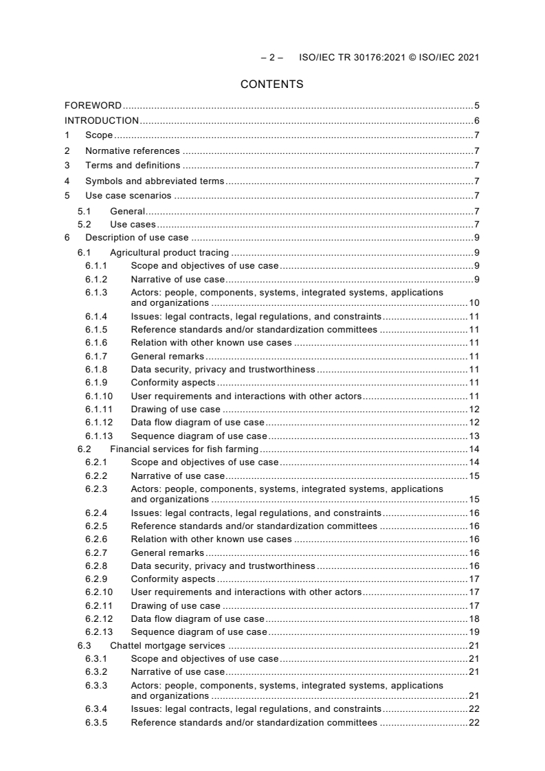 Keywords: ISO/IEC TR 30176:2021, IoT, DLT, blockchain, use cases, supply chain traceability, smart agriculture, energy trading, automated parking, security, privacy, distributed ledger.