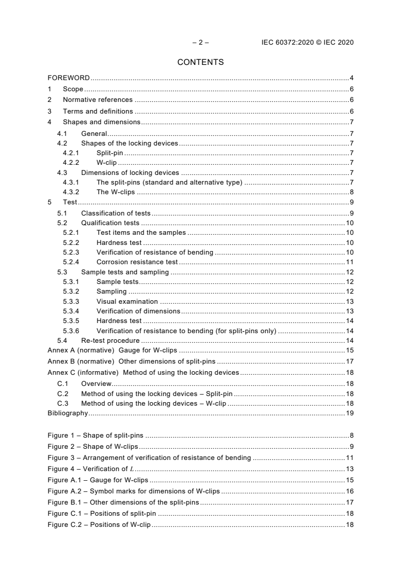 IEC 60372:2020 is applicable to locking devices used with ball and socket couplings of string insulator units and used with the corresponding metal fittings standardized in IEC 60120, when they are supplied separately.The object of this document is - to define the shapes and some standard dimensions for locking devices, - to define the test methods for locking devices, - to state the acceptance conditions for supply, - to give other dimensions for guidance of manufacturing only. This fourth edition cancels and replaces the third edition published in 1984. This edition includes the following significant technical changes with respect to the previous edition: a. Two new designated size of couplings, 36 and 40, were introduced; b. the relevant content of the 28B W-clip was deleted; c. Annex A is informative, Annex B is normative, Annex C is informative.