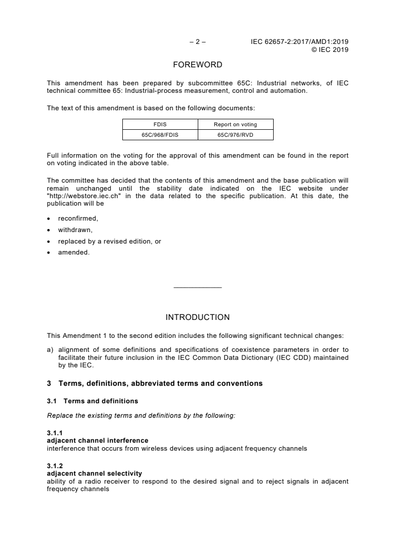 Keywords: IEC 62657-2 amendment, industrial wireless communication, coexistence management, wireless interference, industrial automation networks, electromagnetic interference, wireless network topology, coexistence assessment, wireless communication standards, IEC standards for wireless networks.