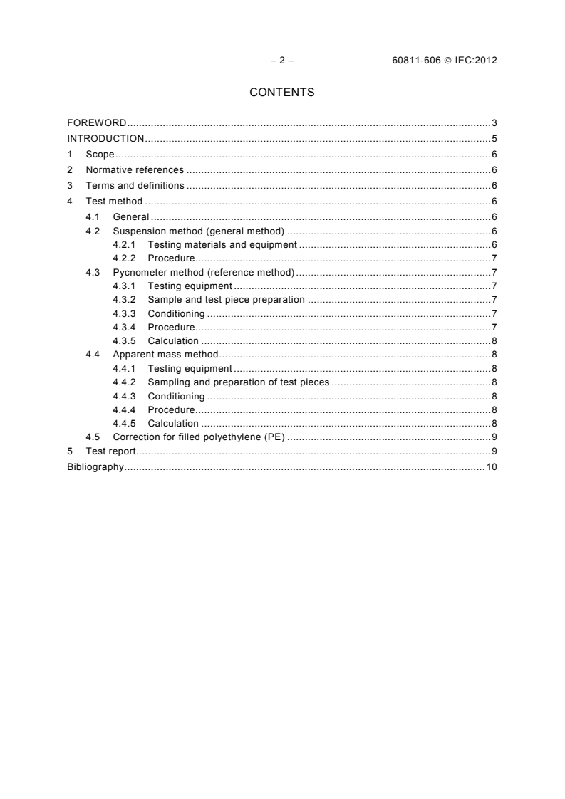 IEC 60811-606:2012 descries the methods for determining the density for the most common types of insulating and sheathing compounds (cross-linked, PVC, PE, PP, etc.). IEC 60811-606:2012 cancels and replaces Clause 8 of IEC 60811-1-3:1993, which is withdrawn. Full details of the replacements are shown in Annex A of IEC 60811-100:2012. There are no specific technical changes with respect to the previous edition, but see the Foreword to IEC 60811-100:2012.