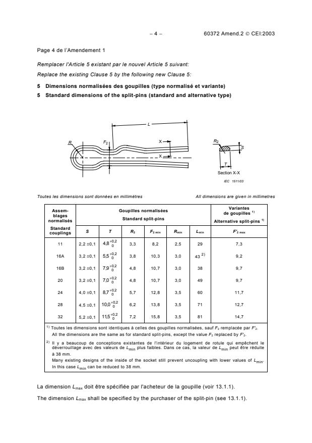 5 Dimensions normalisées des goupilles (type normalisé et variante)