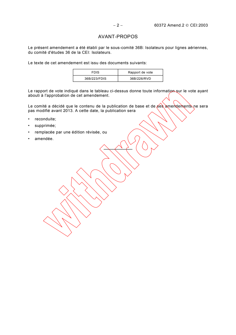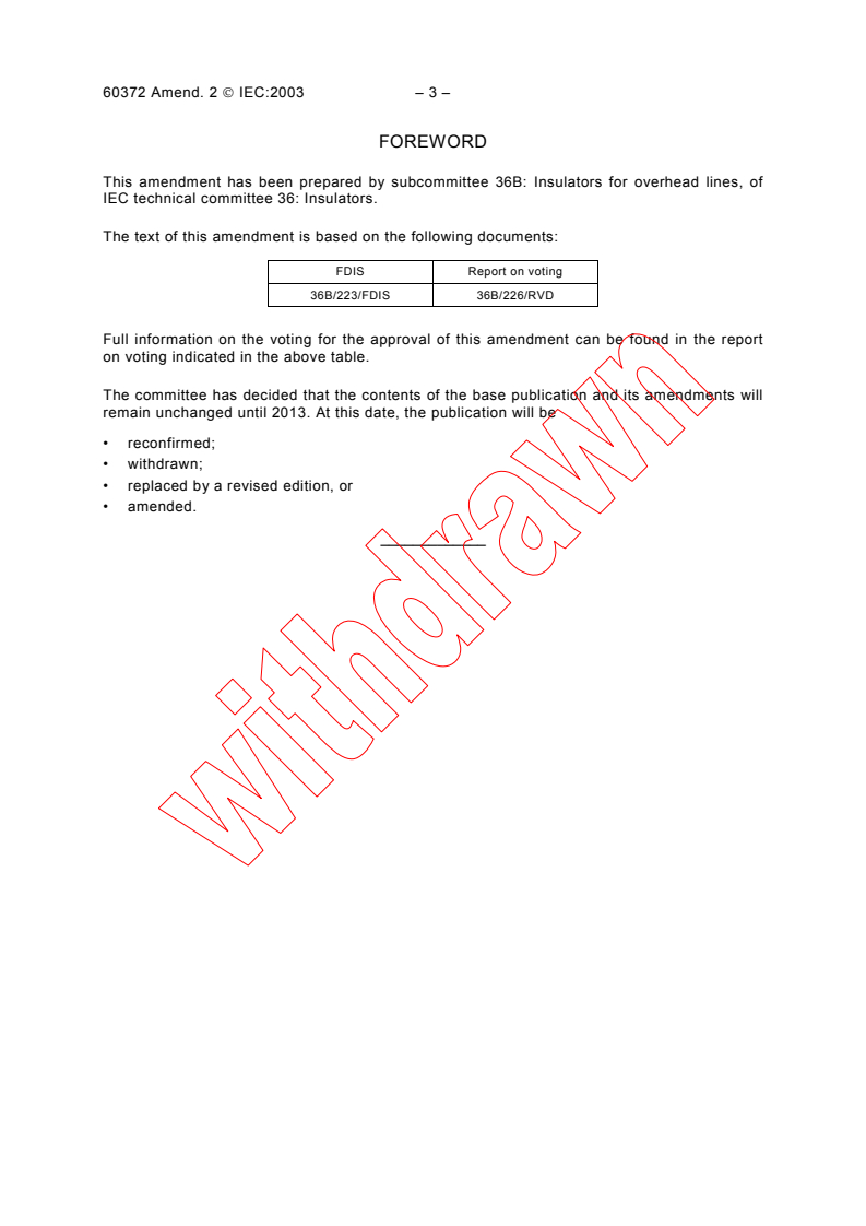 This amendment has been prepared by subcommittee 36B: Insulators for overhead lines, of