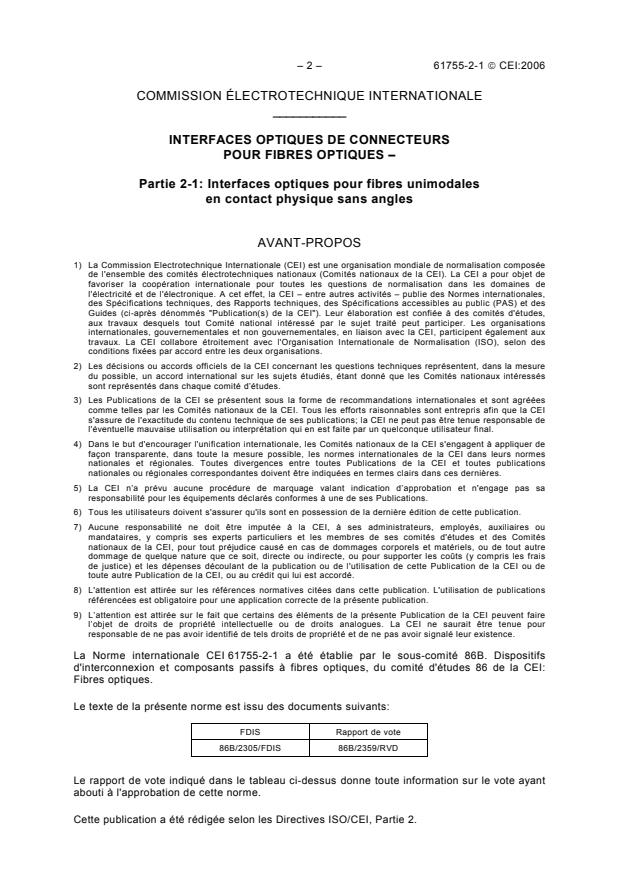 La Norme internationale CEI 61755-2-1 a été établie par le sous-comité 86B. Dispositifs