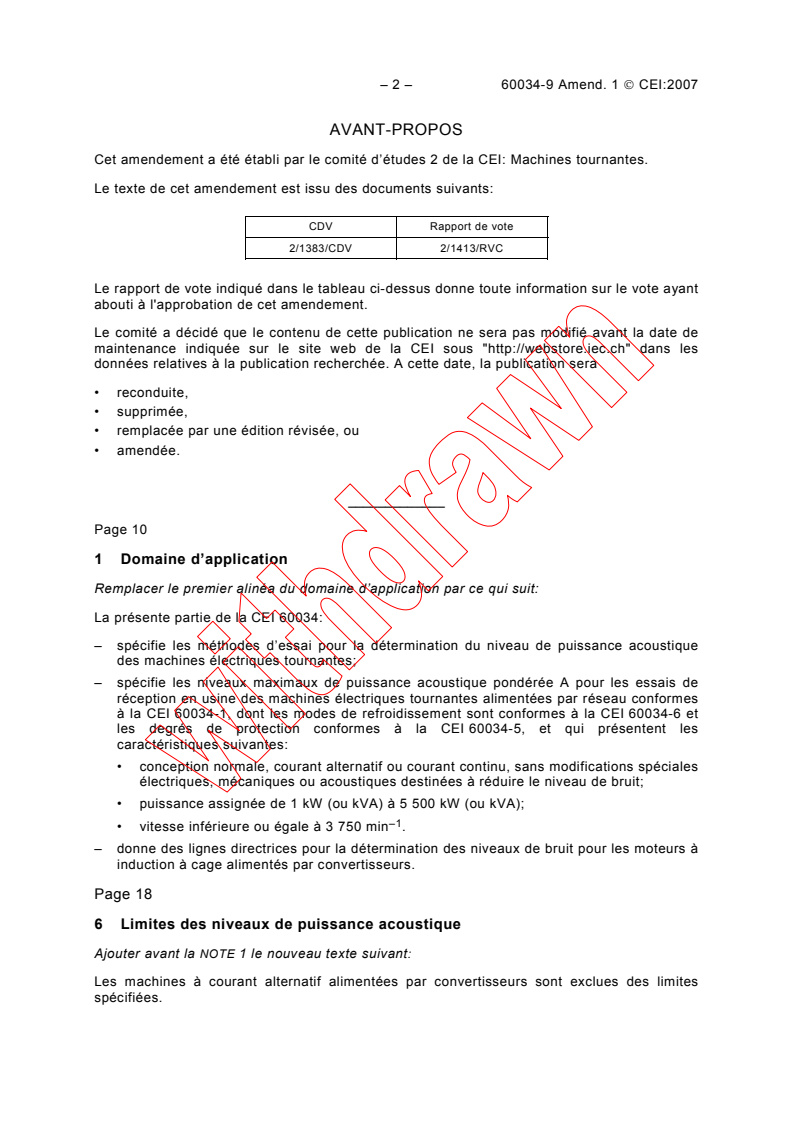Cet amendement a été établi par le comité d’études 2 de la CEI: Machines tournantes.