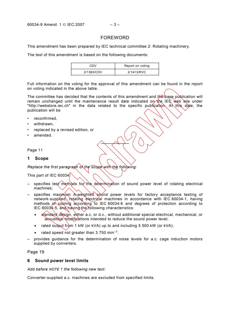 Keywords: IEC 60034-9 Amendment 1, rotating electrical machines, noise limits, sound power level, factory acceptance testing, converter-supplied motors, acoustic emissions, electromagnetic noise, frequency spectrum, resonance frequencies, vibration modes, industrial motor noise, electrical machine standards, IEC standards, noise measurement methods.
