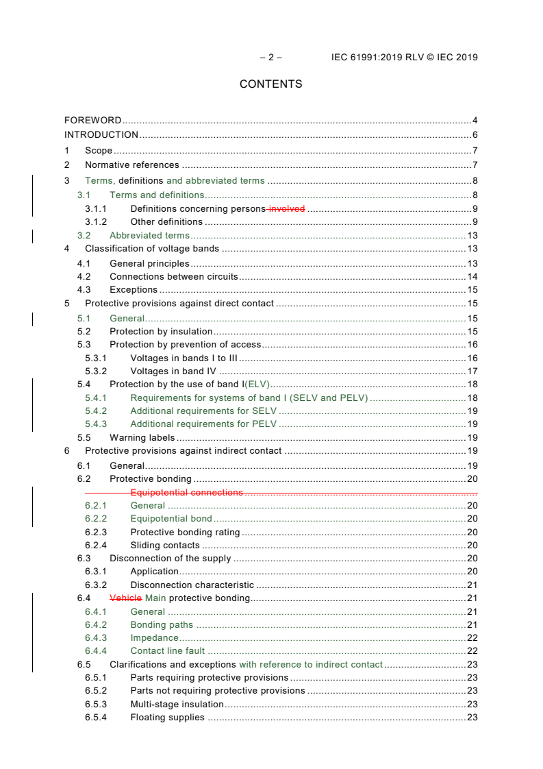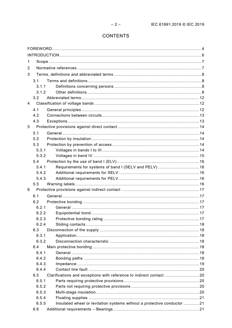 Keywords: IEC 61991:2019, railway applications, rolling stock, electrical hazards, protective provisions, electric shock protection, SELV, PELV, equipotential bonding, voltage bands, EMU impedance management.