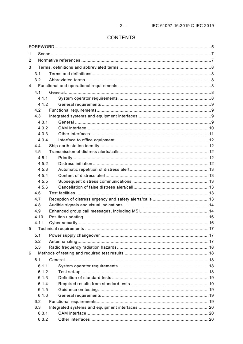 IEC 61097-16:2019 specifies the minimum operational and performance requirements, methods of testing and required test results for any ship earth stations intended for operation in mobile-satellite systems and services which are recognized by the International Maritime Organization as meeting the criteria required by the IMO under regulation IV/4-1 of the International Convention for the Safety of Life at Sea, 1974, as amended, for the provision of mobile-satellite systems and services in the GMDSS, regardless of the mobile satellite provider used.