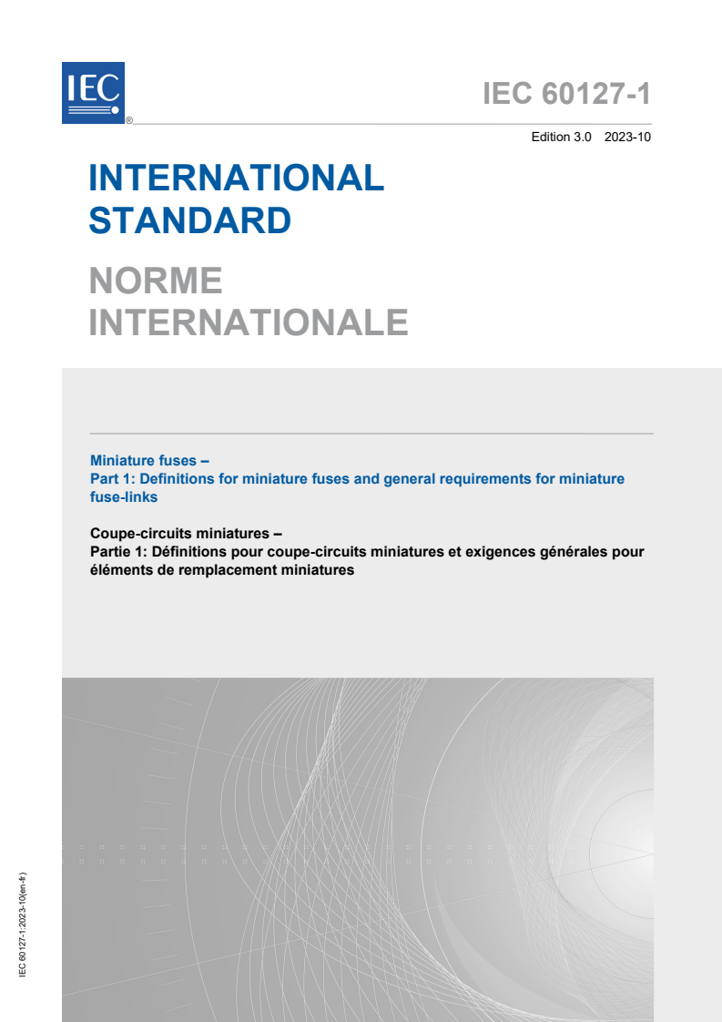 IEC 60127-1:2023 - Miniature fuses - Part 1: Definitions for miniature fuses and general requirements for miniature fuse-links Released:10/26/2023