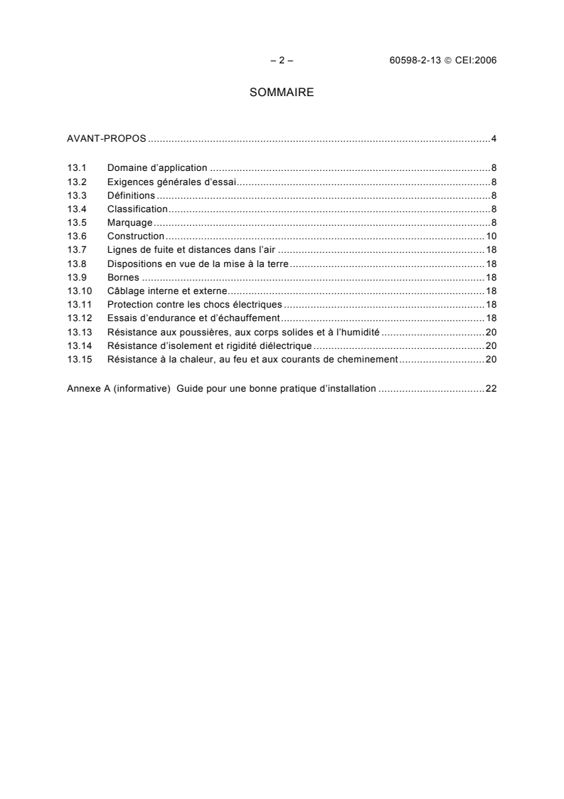 L’IEC 60598-2-13 édition 1.2 contient la première édition (2006-06) [documents 34D/856/FDIS et