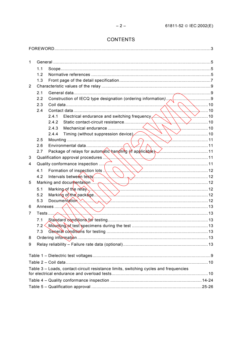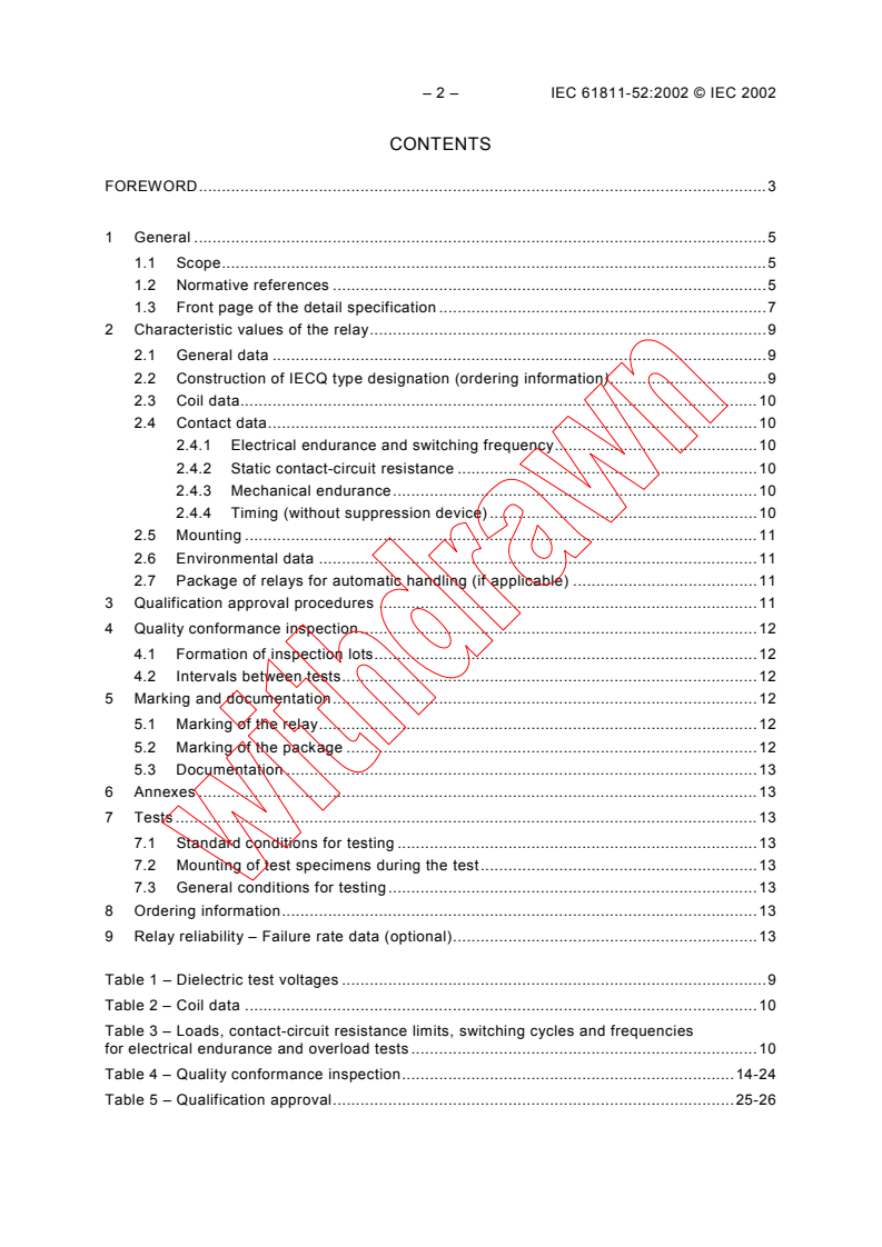 IEC 61811-52:2002 Is a blank detail specification applicable to electromechanical all-or-nothing telecom relays of assessed quality. Selects the appropriate methods of test to be used in detail specifications and contains basic test schedules to be used in the preparation of such specifications.