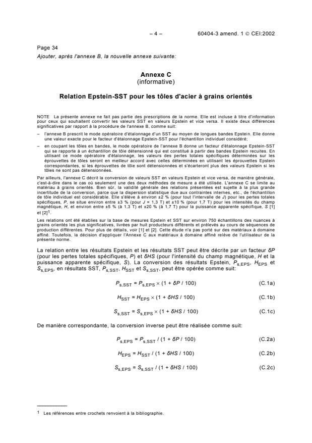 Par ailleurs, l'annexe C décrit la conversion de valeurs SST en valeurs Epstein et vice versa, de manière générale,
