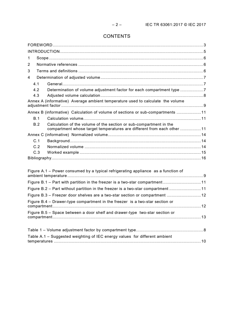 IEC TR 63061:2017(E) sets out a uniform calculation method for the parameter of adjusted volume that is commonly employed in the calculation of energy efficiency household refrigerators, freezers and refrigerator-freezers.