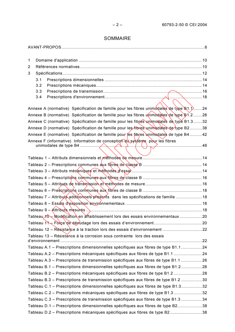 - Particular requirements for individual fibre types or applications covered in annexes specific to fibre families (Annexes A to E)