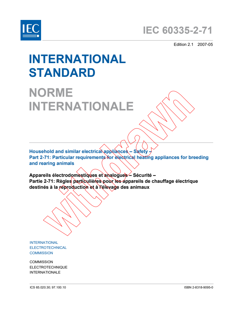 Keywords: IEC 60335-2-71, electrical heating appliances for breeding and rearing animals, safety standard, incubators, heat-radiating appliances, heating plates, chicken breeding units, electrical sitting-hens, livestock rearing safety.