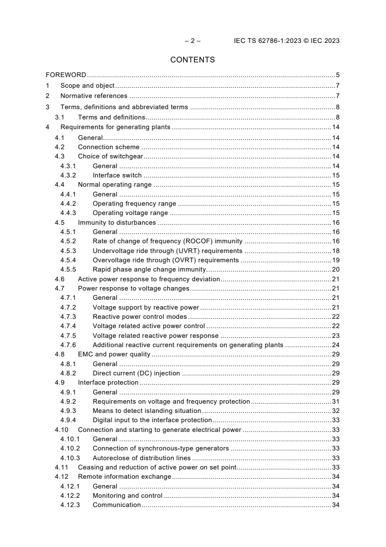 This Technical Specification is part of the IEC 62786 series and is intended to be used together with other IEC standards addressing EMC, protection, power quality and device-level interoperability. Consult additional parts of IEC 62786 for specific DER categories and local regulatory requirements.