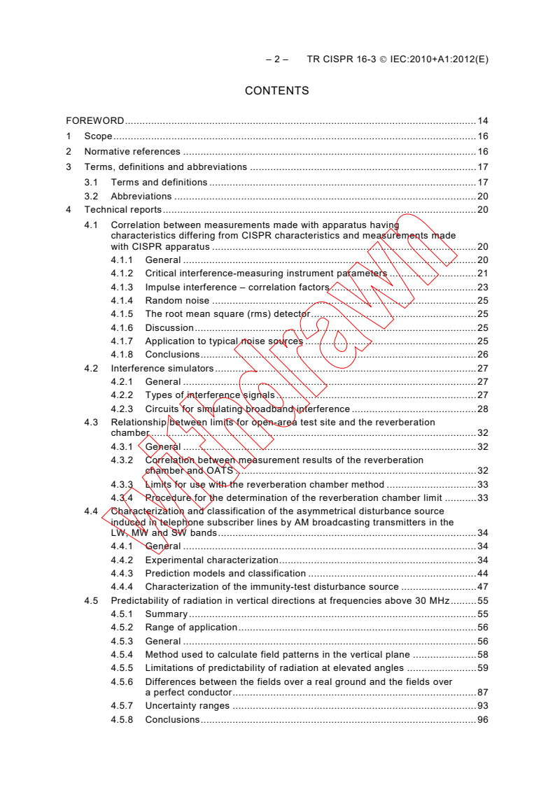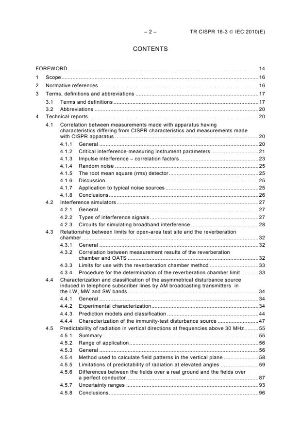 CISPR/TR 16-3:2010(E) is a collection of technical reports that serve as background and supporting information for the various other standards and technical reports in CISPR 16 series. In addition, background information is provided on the history of CISPR, as well as a historical reference on the measurement of interference power from household and similar appliances in the VHF range. Over the years, CISPR prepared a number of recommendations and reports that have significant technical merit but were not generally available. Reports and recommendations were for some time published in CISPR 7 and CISPR 8. At its meeting in Campinas, Brazil, in 1988, CISPR subcommittee A agreed on the table of contents of Part 3, and to publish the reports for posterity by giving the reports a permanent place in Part 3. With the reorganization of CISPR 16 in 2003, the significance of CISPR limits material was moved to CISPR 16-4-3, whereas recommendations on statistics of disturbance complaints and on the report on the determination of limits were moved to CISPR 16 4-4. The contents of Amendment 1 (2002) of CISPR 16-3 were moved to CISPR 16-4-1. This third edition of CISPR 16-3 cancels and replaces the second edition published in 2003, and its Amendments 1 (2005) and 2 (2006). It is a technical revision. The main technical change with respect to the previous edition consist of the addition of a new clause to provide background information on FFT instrumentation.