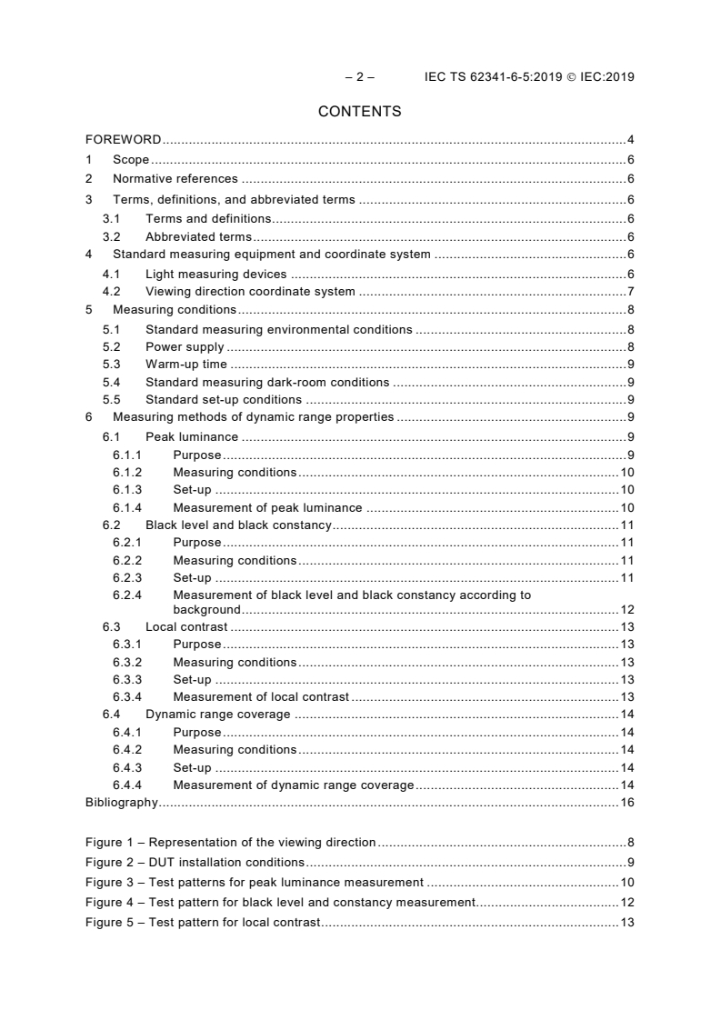 Keywords: IEC TS 62341-6-5:2019, OLED displays, dynamic range, peak luminance, black level, local contrast, luminance meter, spectroradiometer, measurement conditions.
