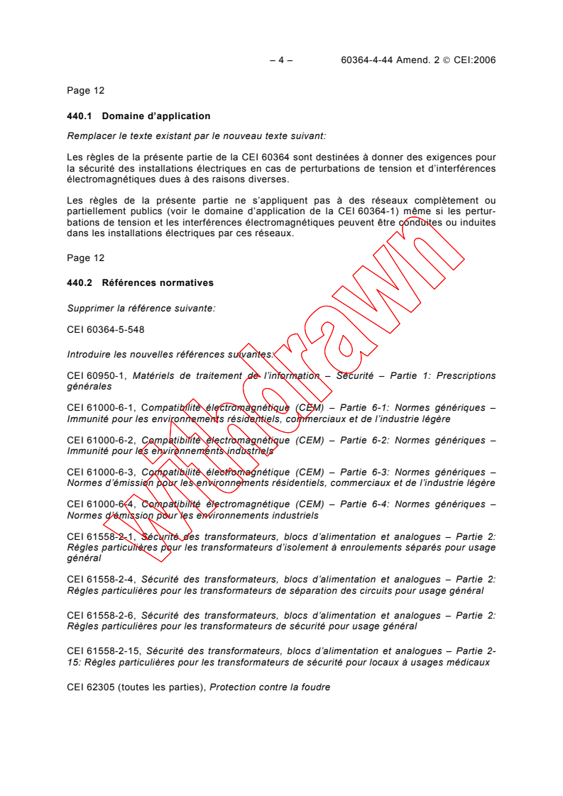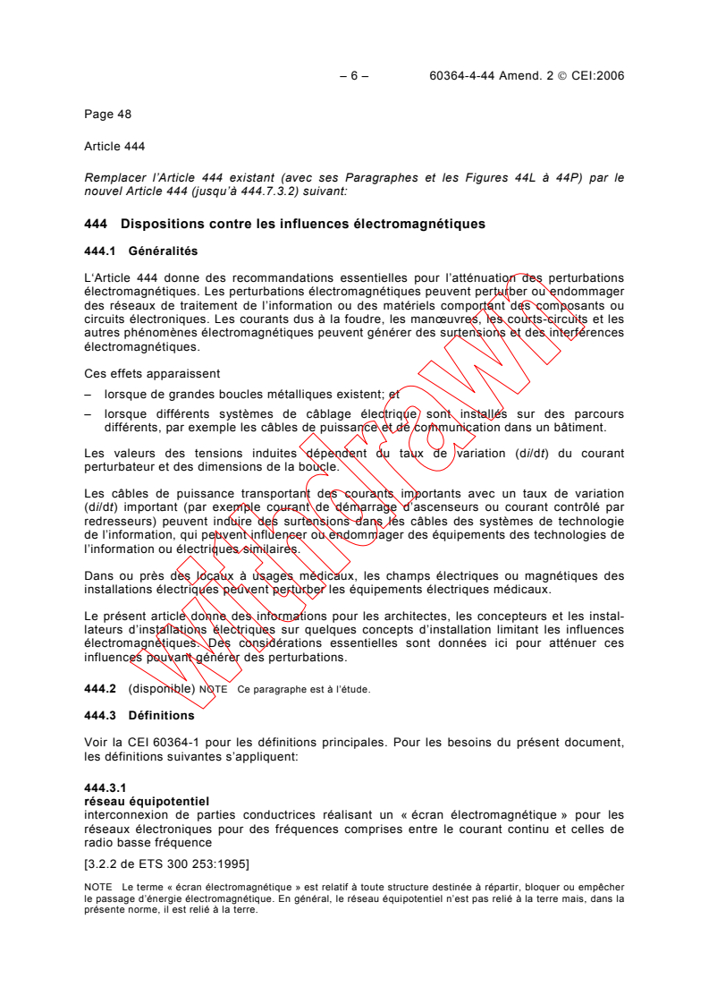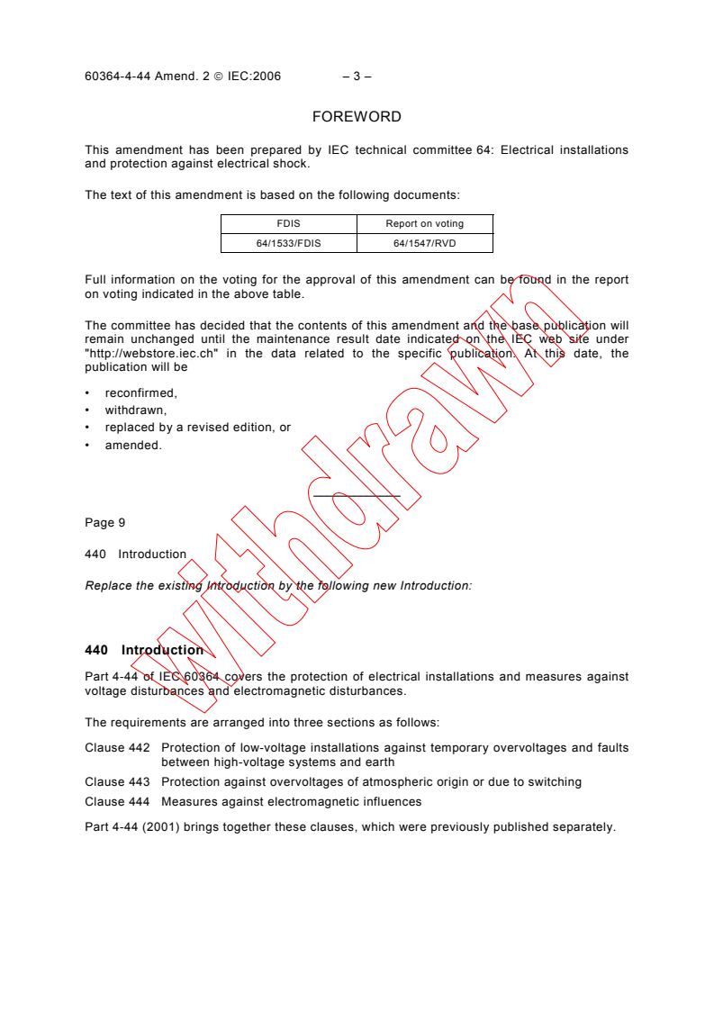 IEC 60364-4-44:2001/AMD2:2006 - Amendment 2 - Electrical installations of buildings - Part 4-44: Protection for safety - Protection against voltage disturbances and electromagnetic disturbances Released:8/15/2006 Isbn:2831884934