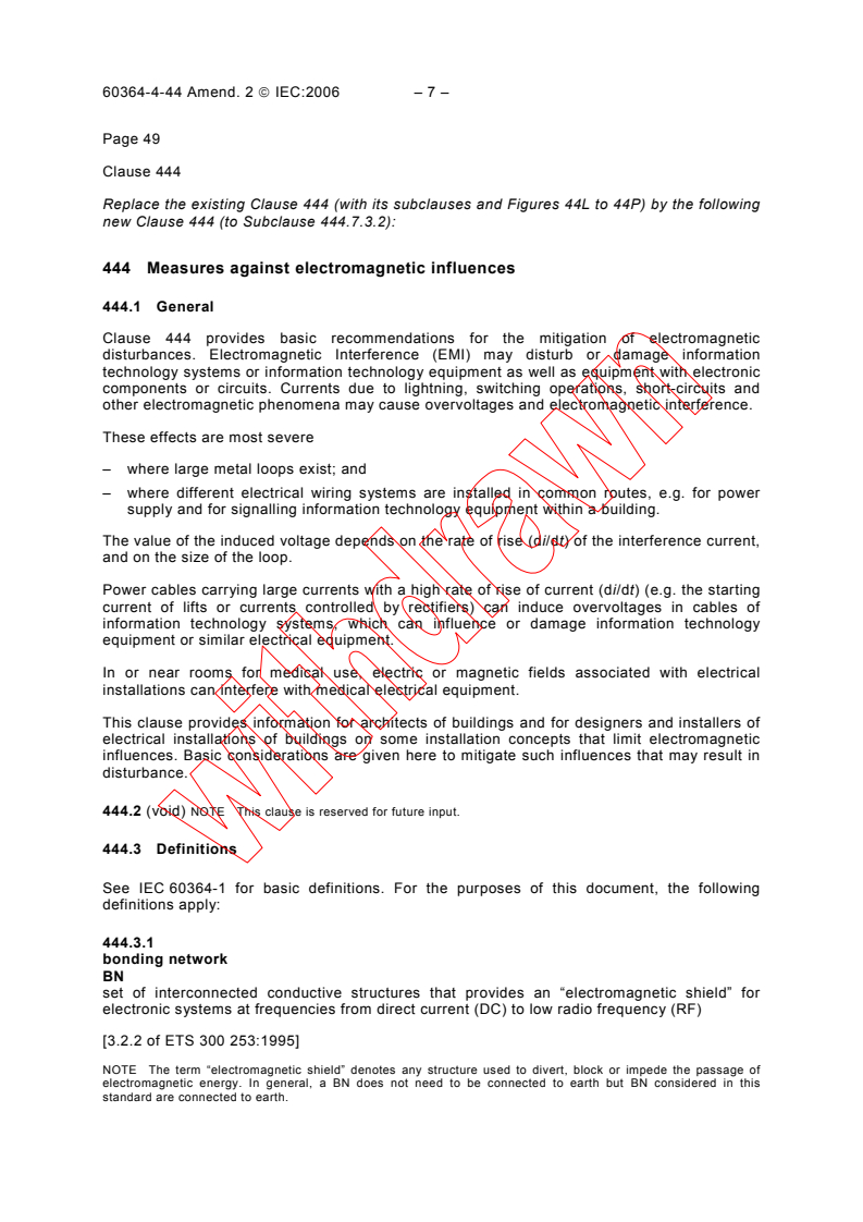 - Clause 444 - measures against electromagnetic influences (substantially revised in AMD2)
