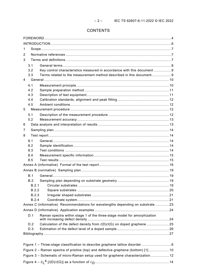 IEC TS 62607-6-11:2022(EN) establishes a standardized method to determine the key control characteristic • defect density nD of graphene films grown by chemical vapour deposition as well as exfoliated graphene flakes by • Raman spectroscopy