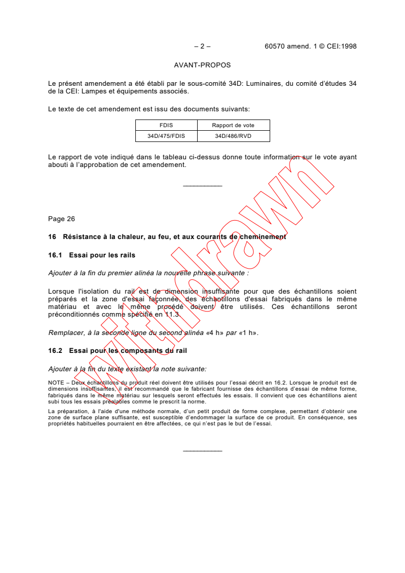 Le présent amendement a été établi par le sous-comité 34D: Luminaires, du comité d’études 34